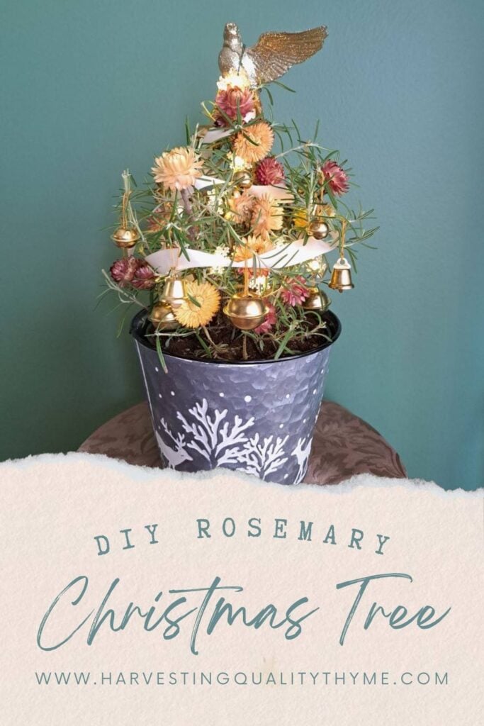 I first heard about tabletop Christmas trees on a museum tour at a historic castle. They mentioned that back then, it was the norm for people to have smaller trees decorated and placed on the table with presents on the table itself. Plus, they would often decorate with edible little treats and things. So, the decor was part of the presents as well. How fun. Ok… I am off-topic now – back to the rosemary.
